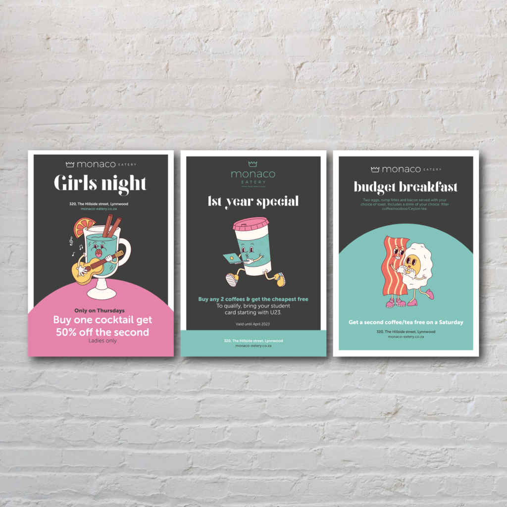 Monaco Eatery is a restaurant situated in Pretoria, South Africa. Monaco Eatery is ideal for a quick lunch, a business meeting or a private function. Their goal is to make their clients feel like royalty.